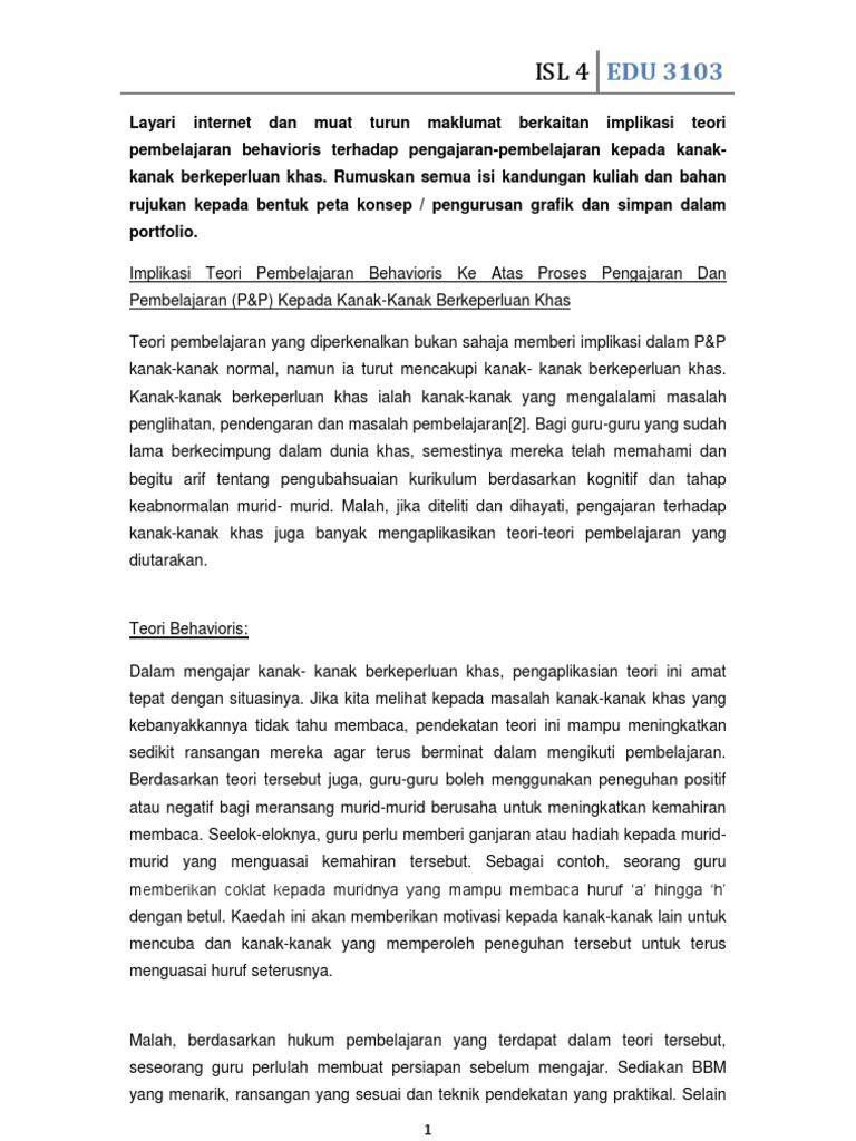 Teori Behaviorisme Dan Aplikasinya Dalam Pengajaran Dan Pembelajaran from imgv2-2-f.scribdassets.com Menurut teori ini dalam belajar yang penting adalah input yang berupa stimulus dan output yang berupa respon. Tujuan pembelajaran menurut teori behavioristik ditekankan pada penambahan pengetahuan, sedangkan belajar sebagai aktivitas mimetic, yang menuntut 1. Stimulus adalah apa saja yang diberikan guru kepada siswa, sedangkan respon berupa reaksi atau. Teori behaviorisme dan teori kognitifisme k. Teori belajar adalah suatu teori yang di dalamnya terdapat tata cara pengaplikasian kegiatan belajar mengajar antara guru dan siswa, perancangan metode pembelajaran yang akan. Dalam pembelajaran ilmu pengetahuan alam teori belajar behaviorisme yang berpedoman pada perubahan tingkah laku setelah melakukan pembelajaran dapat diterapkan sudjana n, 1990. Tujuan pembelajaran, sifat materi pelajaran, karakteristik pebelajar, media dan fasilitas pembelajaran yang tersedia. Teori behaviorisme telah dipelopori oleh seorang ahli psikologi iaitu b.