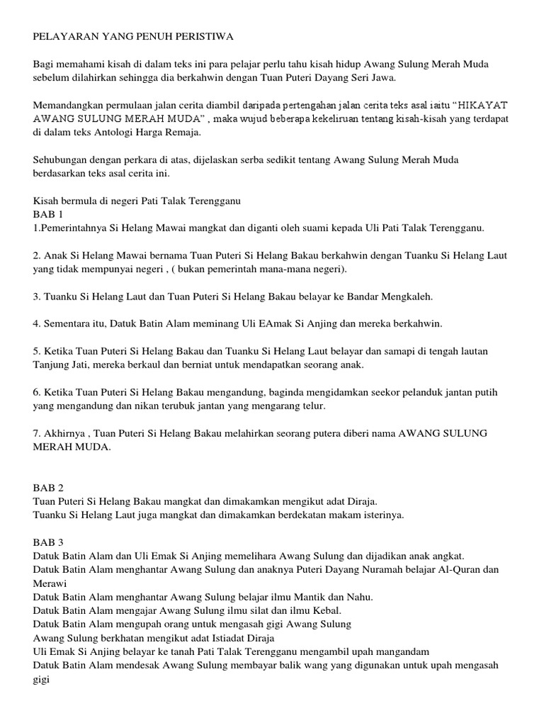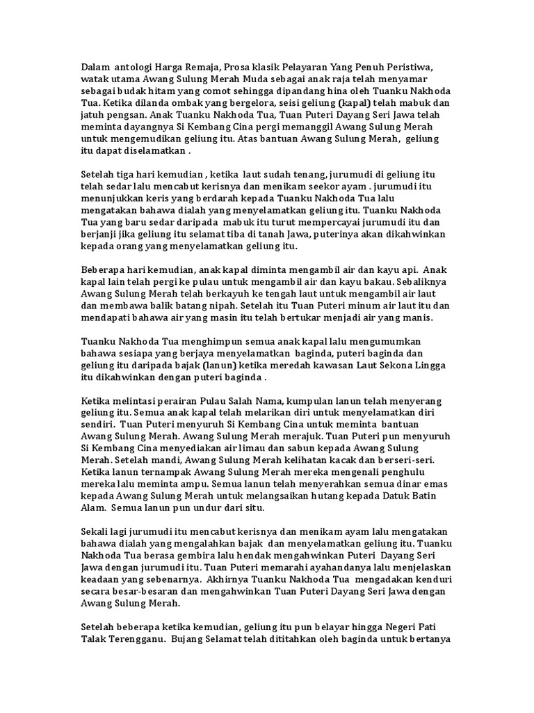 Hikayat awang sulong merah muda is a literary work that was published in 1907. Hikayat awang sulung merah muda book. It came from an oral tale narrated by pawang ana and was written by raja haji yahya. Mar 28, 2010 · awang sulung merah muda menggunakan kesaktiannya menggantikan diri dengan sebatang tiang sebagai ganti diri untuk puteri dayang nuramah yang kesedihan kerana terpaksa berpisah dengan awang sulung merah muda. Ia merupakan satu cerita lisan yang disampaikan oleh pawang ana dan ditulis oleh raja haji yahya dan diterbitkan oleh sir r. Twixt the sunday and the monday, on the twelfth day of the moon, shadows falling twelve feet long: Setelah awang sulung merah muda dewasa, entah mengapa tuanku datuk batin alam berubah menjadi benci kepada awang sulung merah muda (saya tak faham bahagian ini) menyebabkannya merantau membawa diri. It came from an oral tale narrated by pawang ana and was written by raja haji yahya. Beliau ialah seorang pawang diraja sultan perak dan telah berguru dengan beberapa orang guru silat yang berbangsa melayu fathoni. 19 (l) gaya bahasa sindiran gaya bahasa ini seperti namanya 'sindiran' adalah mengenai satu gaya perli kepada sesuatu yang kurang digemari atau yang tidak bersesuaian dengan hati. Hikayat awang sulong merah muda merupakan salah satu daripada kesasteraan bahasa melayu yang ditulis pada masa dahulu sekitar 1907. Hikayat awang sulong merah muda (jawi: May 02, 2020 · awang sulung merah muda dibesarkan dengan penuh kasih sayang dan diberikan didikan yang sempurna.